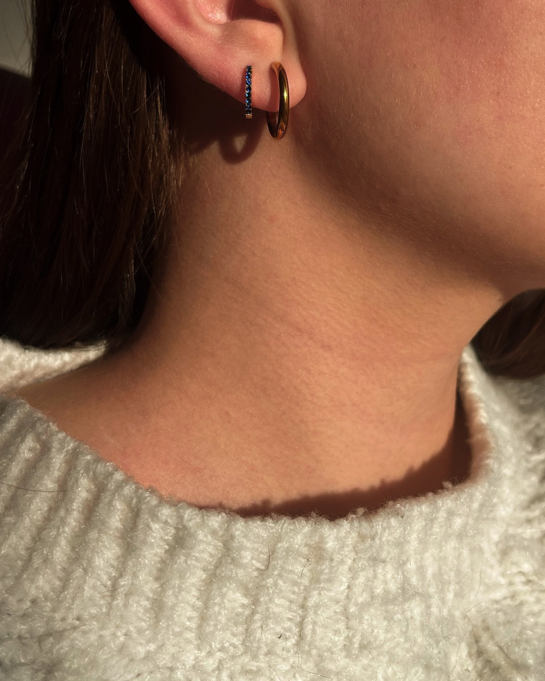 Our earrings are waterproof, tarnish-free, and hypoallergenic. You can go swimming, take a shower, or go to the gym with them and you never have to take them off. To keep the gold looking its best for a long time, avoid contact with chemicals or abrasive surfaces. Repeated exposure to chemicals can diminish the jewelry's brilliance and damage its protective layer.