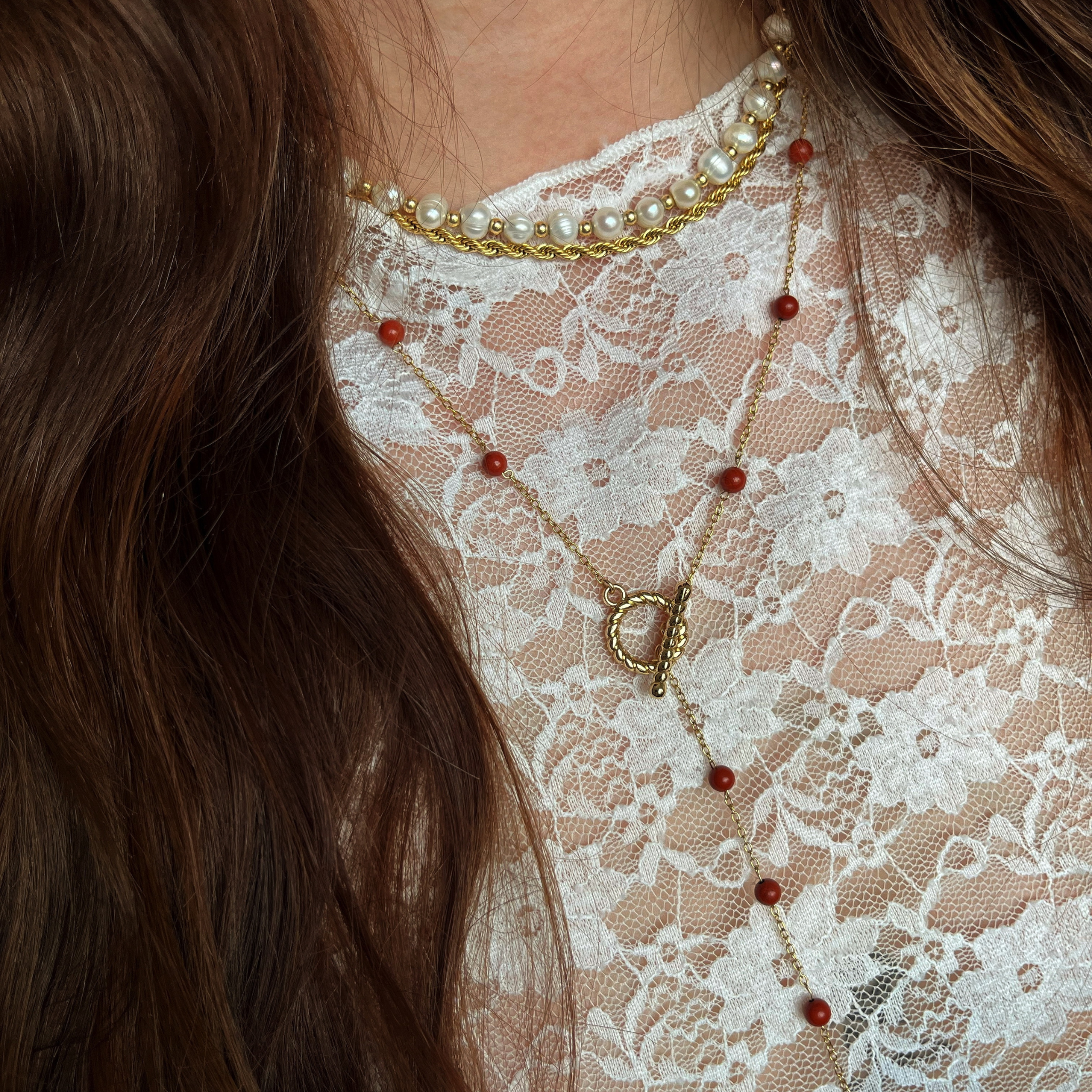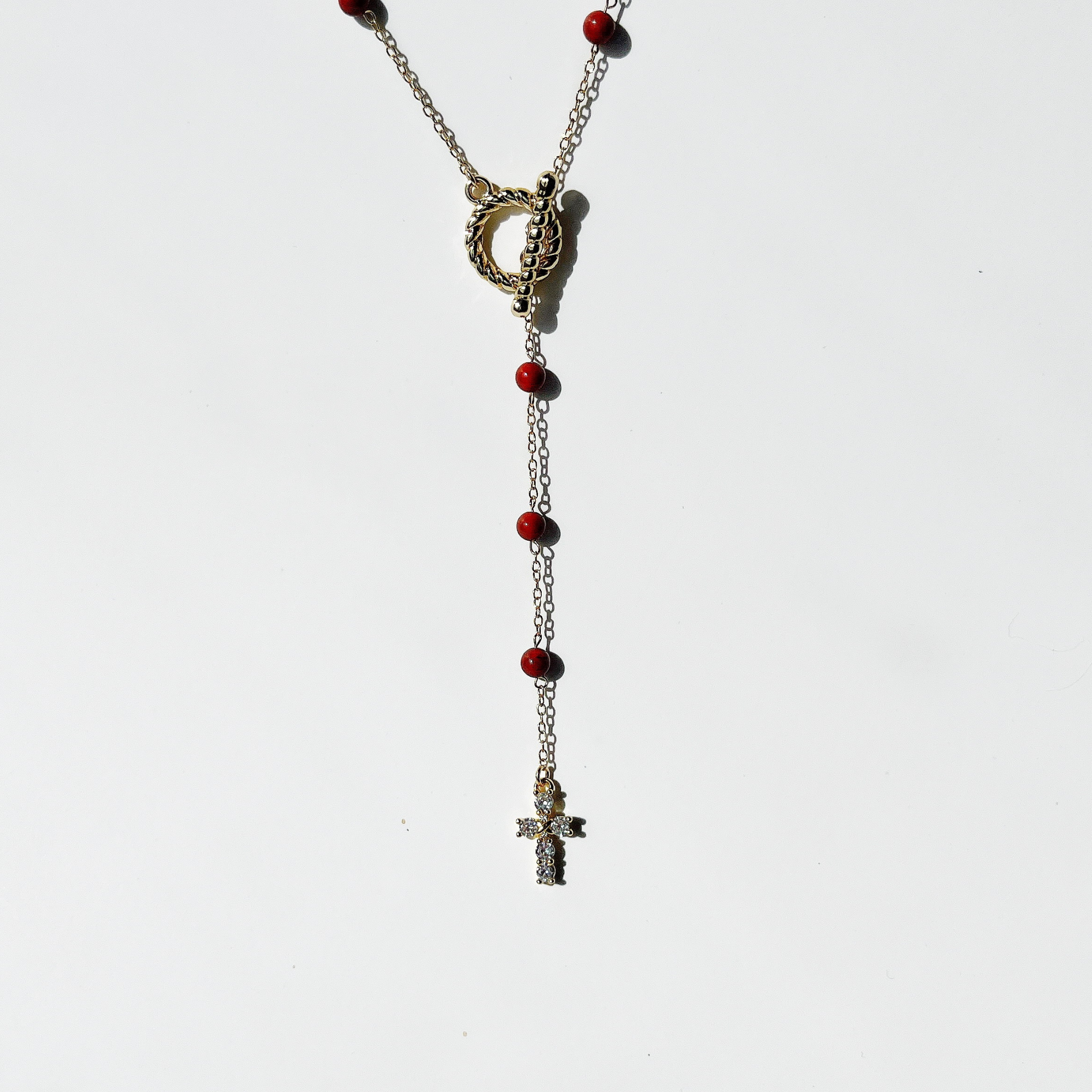 Elevate your style everyday with this delicate gold cross necklace, adorned with sparkling stones. This simple, yet meaningful necklace serves as a subtle reminder of faith and hope. As well as bringing you empowerment, strength, and a strong spiritual grounding vibration with the genuine red jasper beads on its chain. This necklace can be worn everyday, anywhere since it is waterproof, non tarnish, and hypoallergenic.