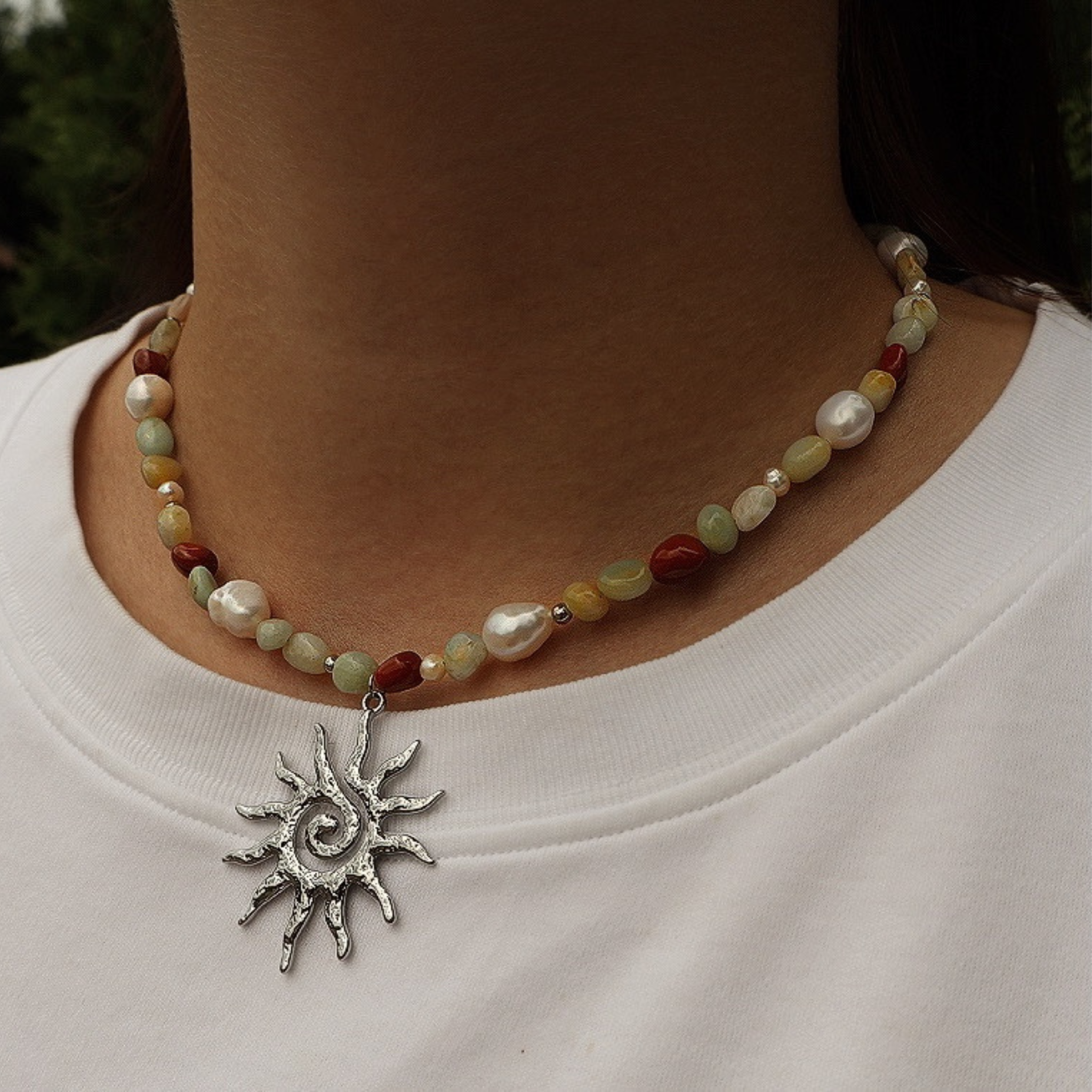 Anchored by a radiant sun pendant, Gaia honors the energy of the divine feminine and the Earth by bringing you grounding, nurturing, and light.